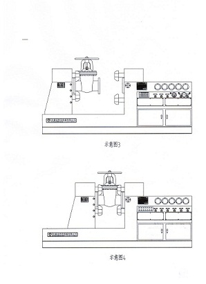 2.主要功能原理:采用閥門法蘭端面定位,液壓爪抱壓閥門法蘭背面壓緊密封方法,左右兩向工作臺(tái)上夾爪機(jī)構(gòu)的軸向壓緊與放松及徑向大小進(jìn)退同步工作。右向工作臺(tái)設(shè)置90度翻轉(zhuǎn)功能,左向工作臺(tái)設(shè)為平衡式移動(dòng)架可水平移動(dòng)。各功能傳動(dòng)都由液壓驅(qū)動(dòng)電器按鈕控制, 保壓和泄壓用針型閥手動(dòng)控制。根據(jù)被試閥門壓力等級(jí)可調(diào)節(jié),最高不能超過上述(表中)壓力。